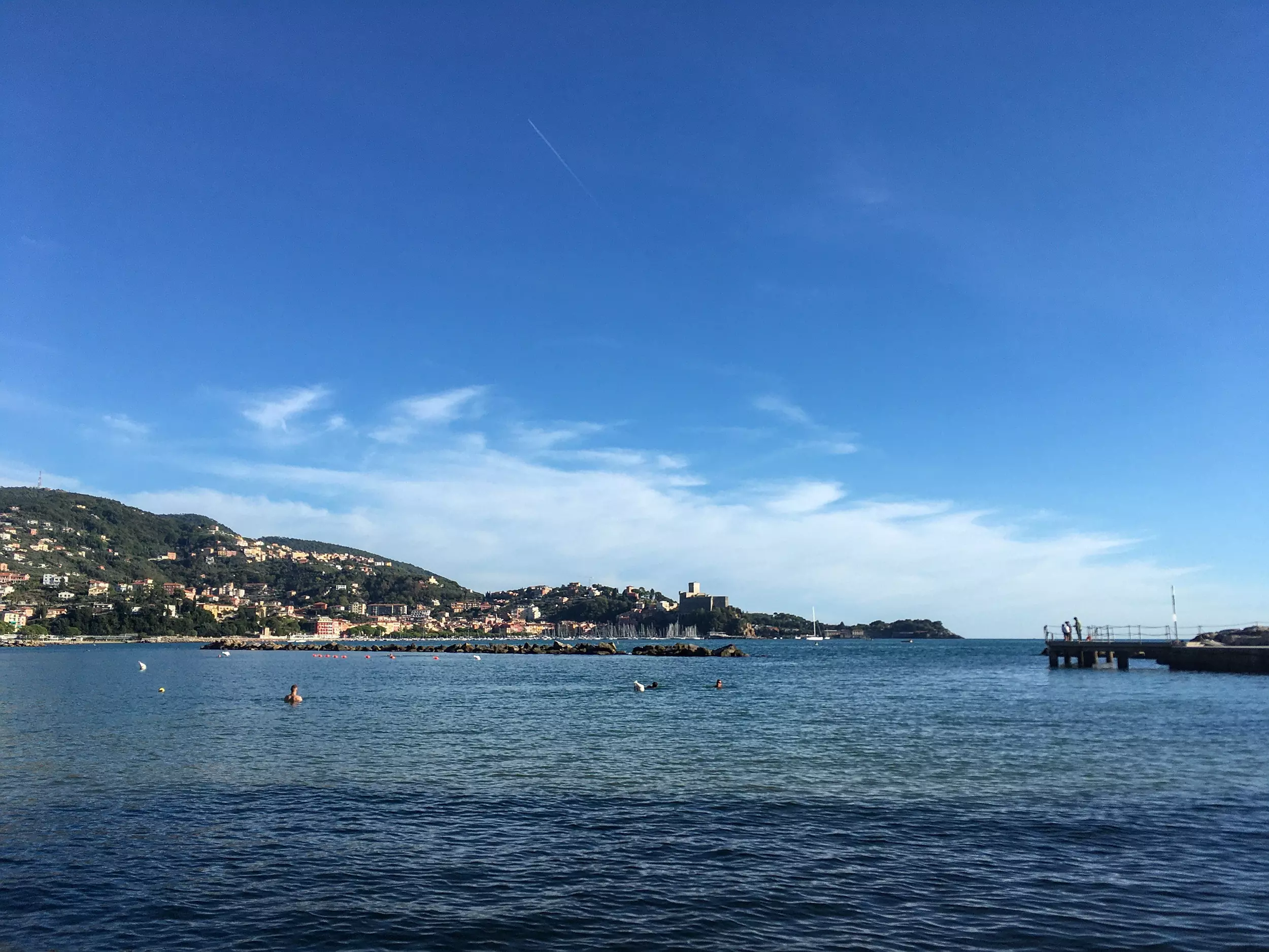 I jumped off at San Terenzo. A small town nestled in the shoulder of the hills, curved around a picturesque beach. Zoe was out swimming when I arrived, so I waited at a beachside caffe, sipping an espresso and cooling off in the sea breeze.