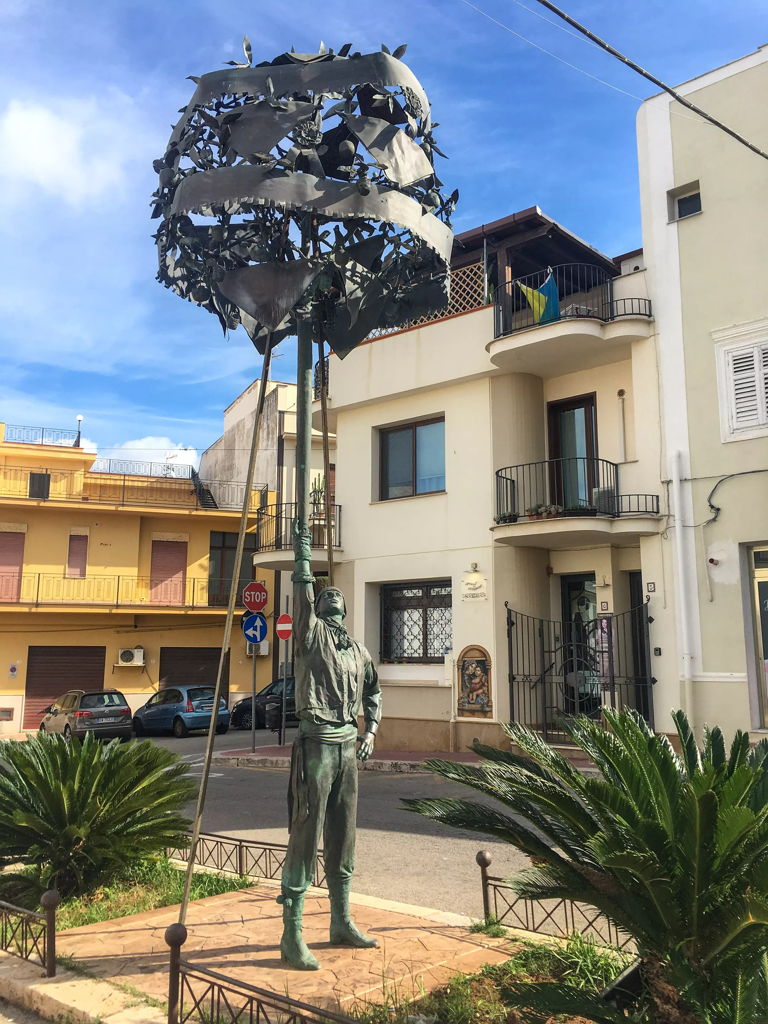 I'm here for a week, staying in this great AirBnB. It has a fantastic terrace, where I can work with a sea view. It overlooks a fountain and a statue of the Fiesta di lie Schiette. I'm surrounded by small caffes and restauratns. A a minute away from this gorgeous beach.
