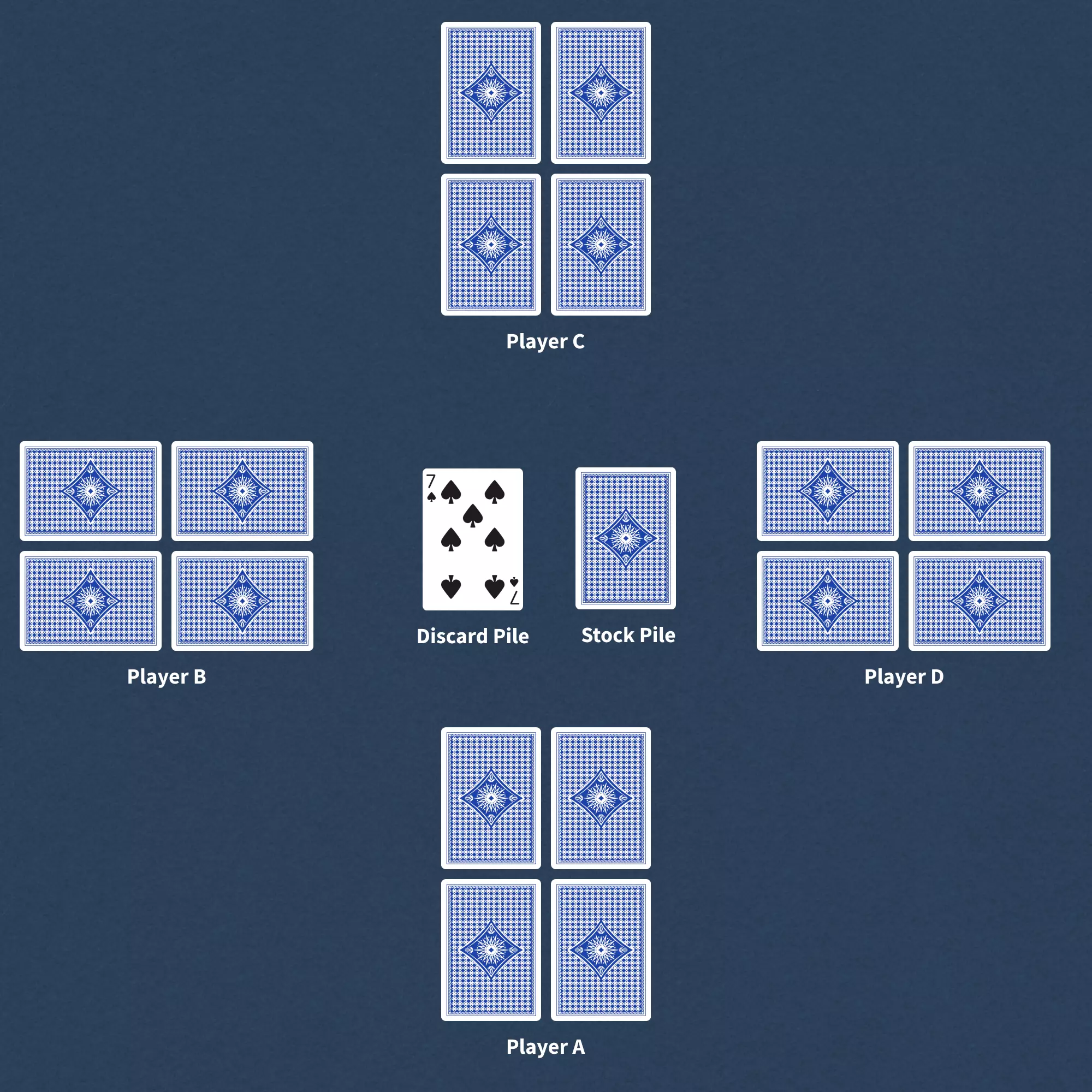 The rest of the cards are placed face down in a stockpile in the centre of the table.
